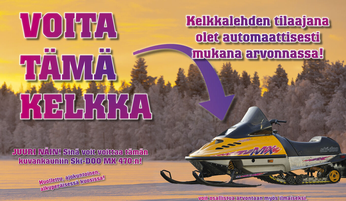 Nyt sinulla on elämäsi mahdollisuus voittaa unelmiesi klassikko. Tämä kuvankaunis, huollettu ja suoraan ajoon kelpaava Ski-Doo MX 470 löytää uuden kodin 19. joulukuuta 2025.